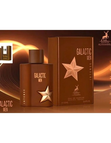 Descoperă Alhambra Galactic Men Intense, un parfum masculin sofisticat, care combină note îndrăznețe și senzuale pentru a crea o experiență olfactivă memorabilă. Cu un început îmbietor de tutun dulce și miere aurie, urmat de o inimă seducătoare de cacao amară și vanilie cremoasă, acest parfum continuă cu o bază profundă de patchouli și ambră caldă, lăsând o urmă de neuitat.